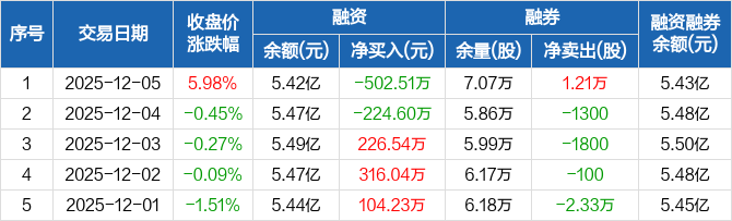 新安股份:融资净偿还502.51万元,融资余额5.42亿元(12-05)