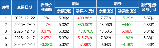 新安股份:融资净买入408.86万元,融资余额5.36亿元(12-22)