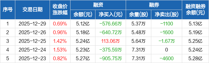 新安股份:融资净偿还576.66万元,融资余额5.12亿元(12-29)
