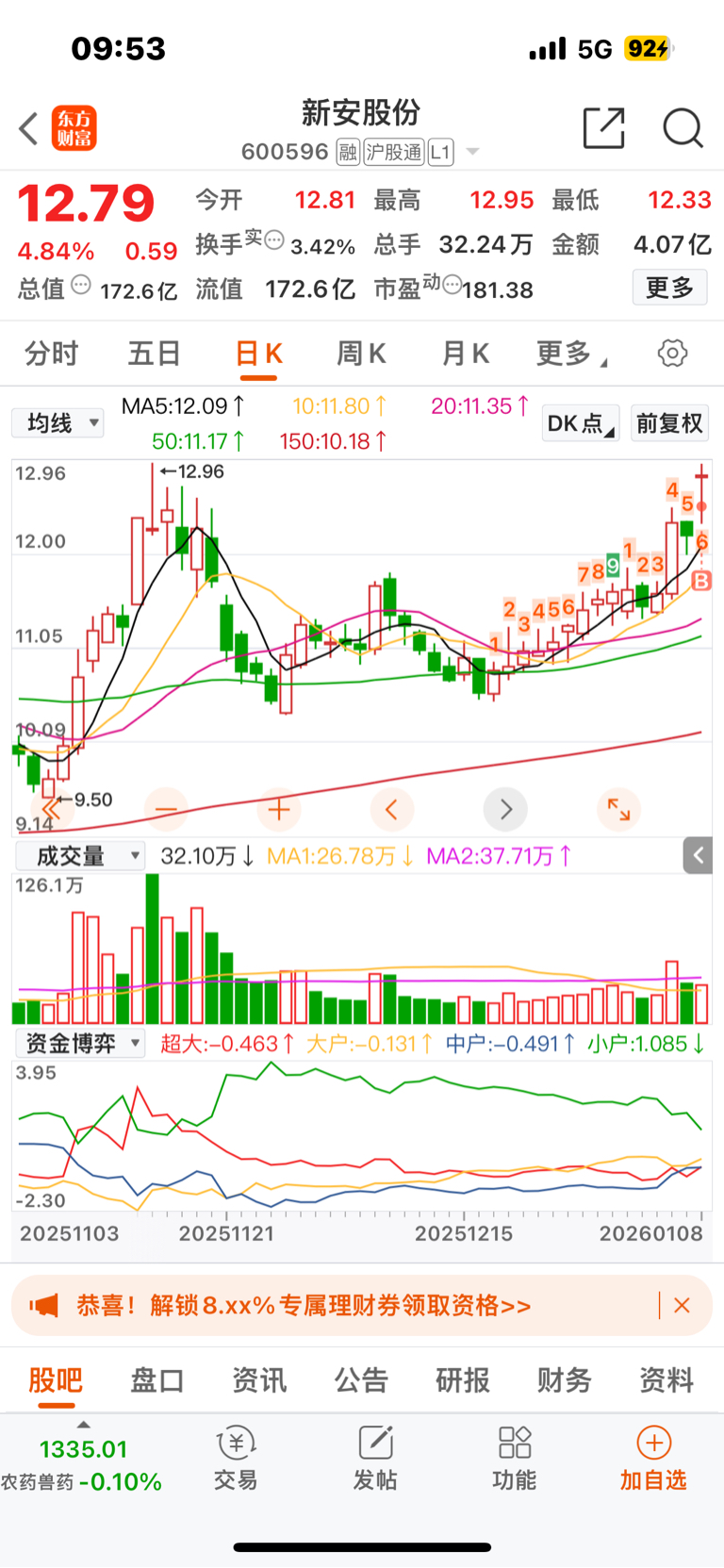 $新安股份(SH600596)$ 买不到三孚,只能买你了