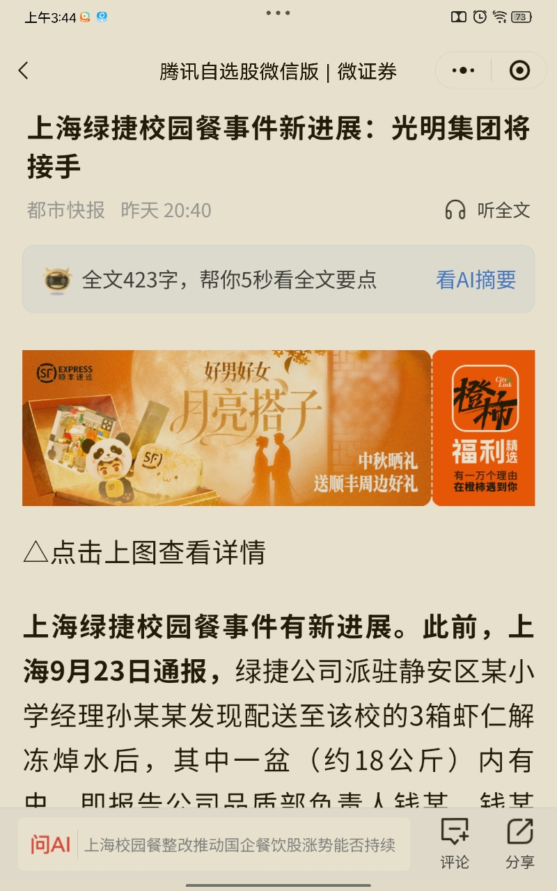 不会真的接手了吧?光明集团。牛奶。也有他的一份子。确实是个好消息。毕竟。供应早点