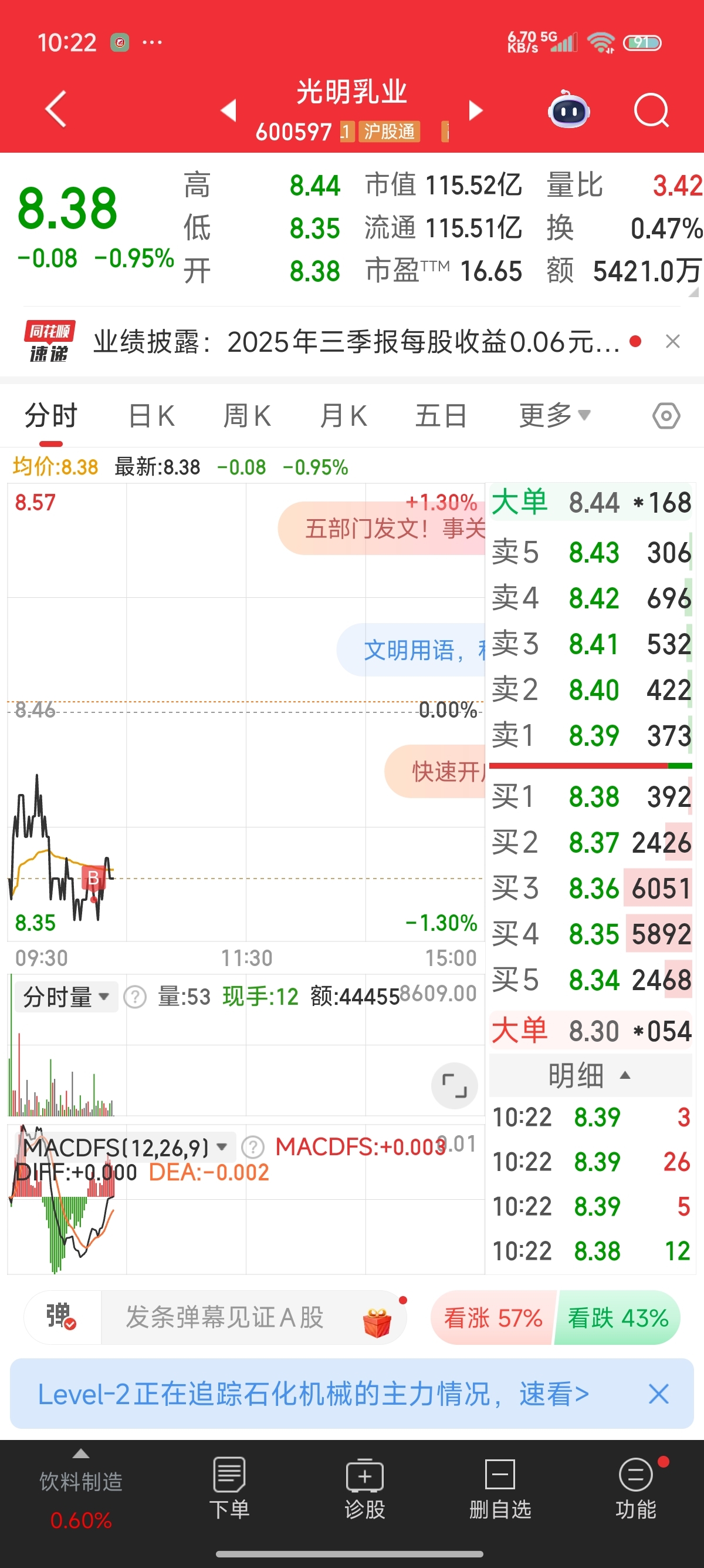 $光明乳业(SH600597)$ 加仓了点光明乳业!浮亏了一个多点,后面大概率回本走不做它了。
