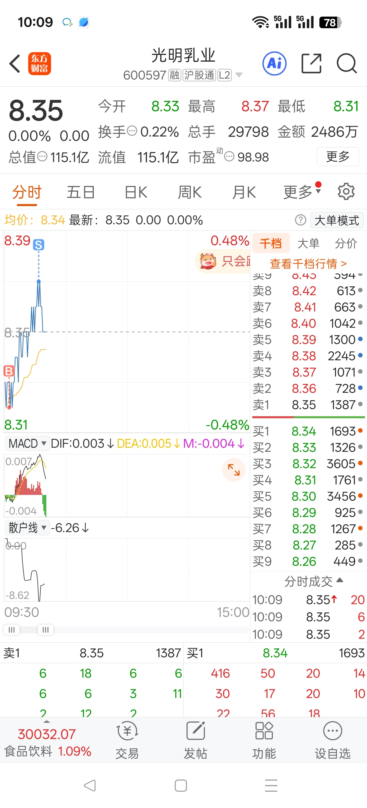 $光明乳业(SH600597)$ 先搞五分压压惊
