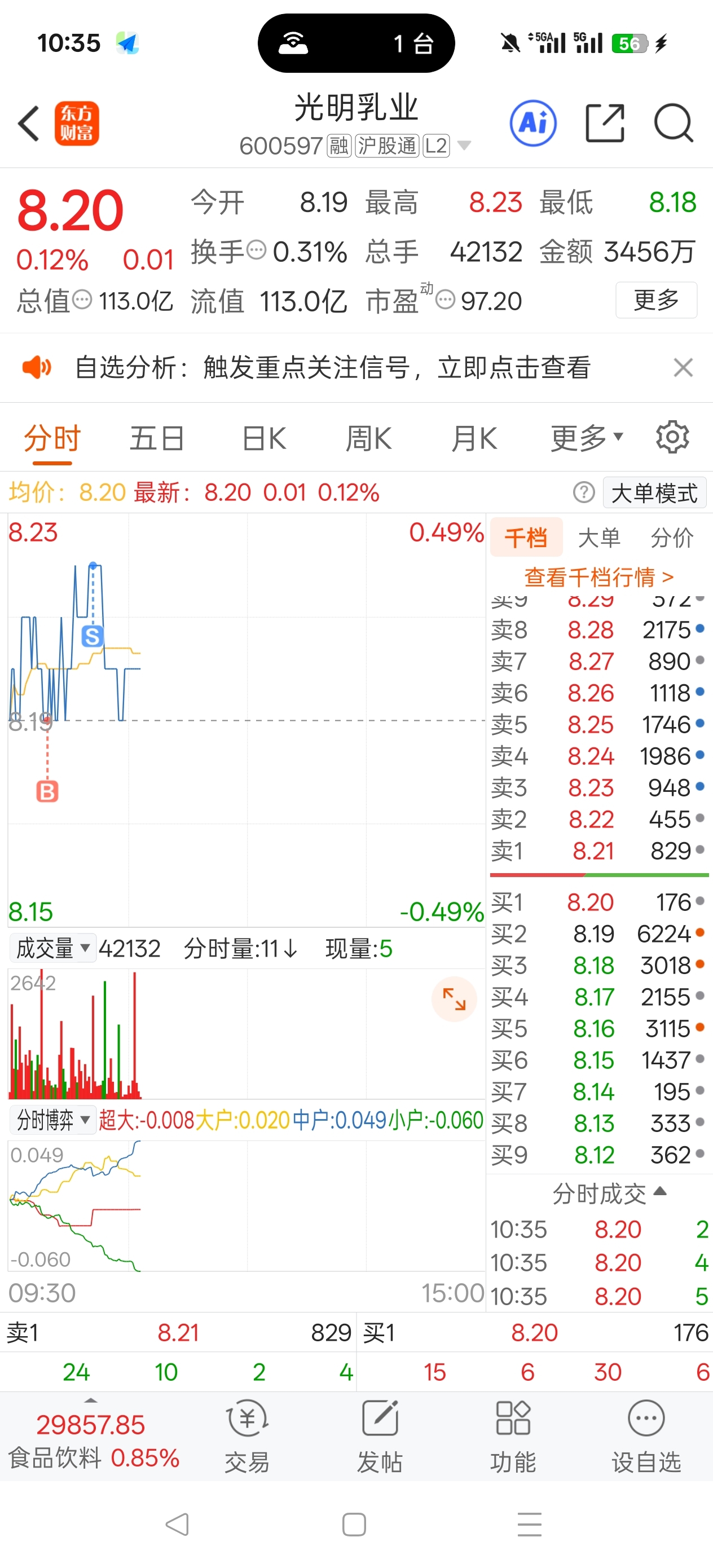 $光明乳业(SH600597)$ 7000股又买卖一次
