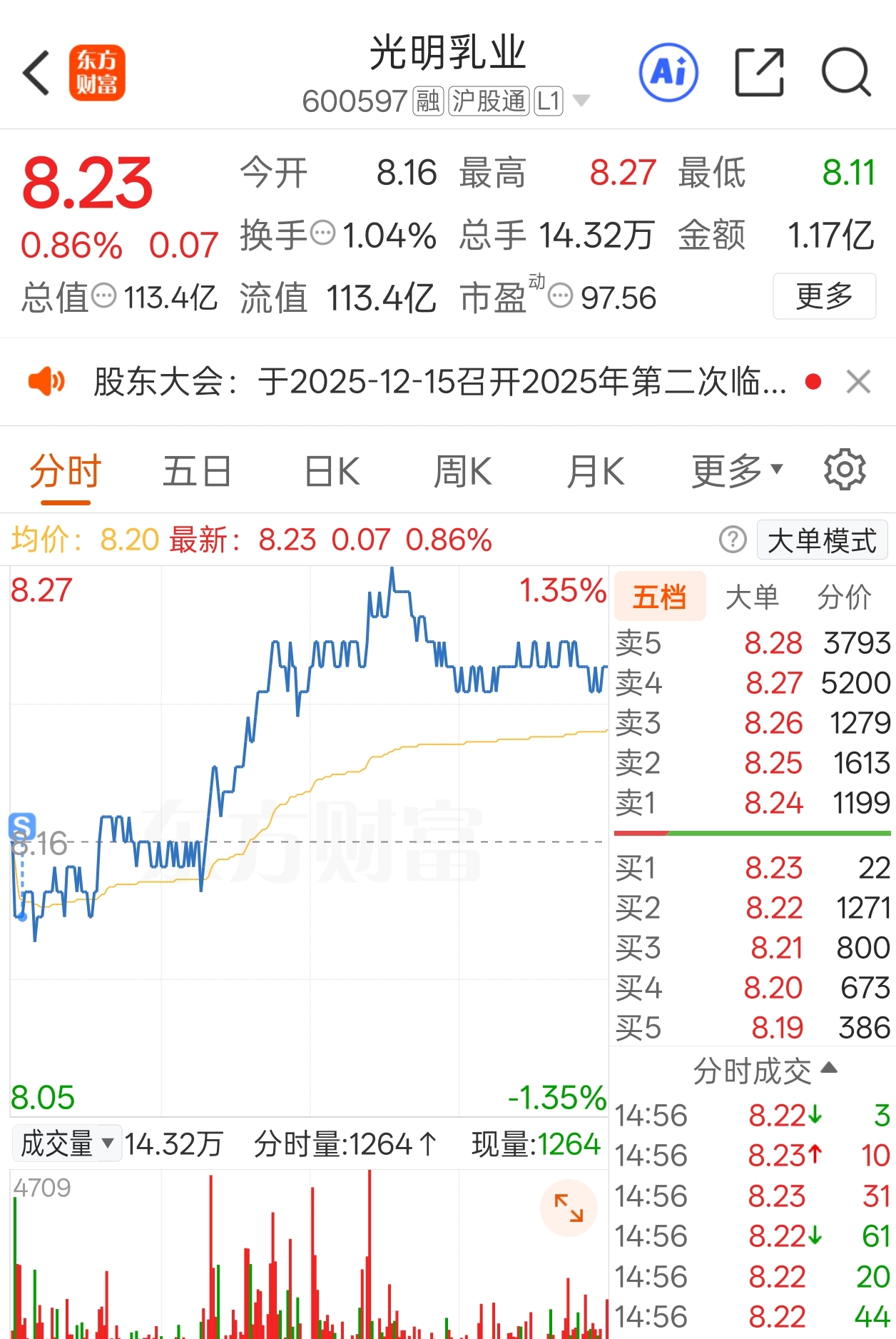 $光明乳业(SH600597)$ 完球,还给机会进吗?