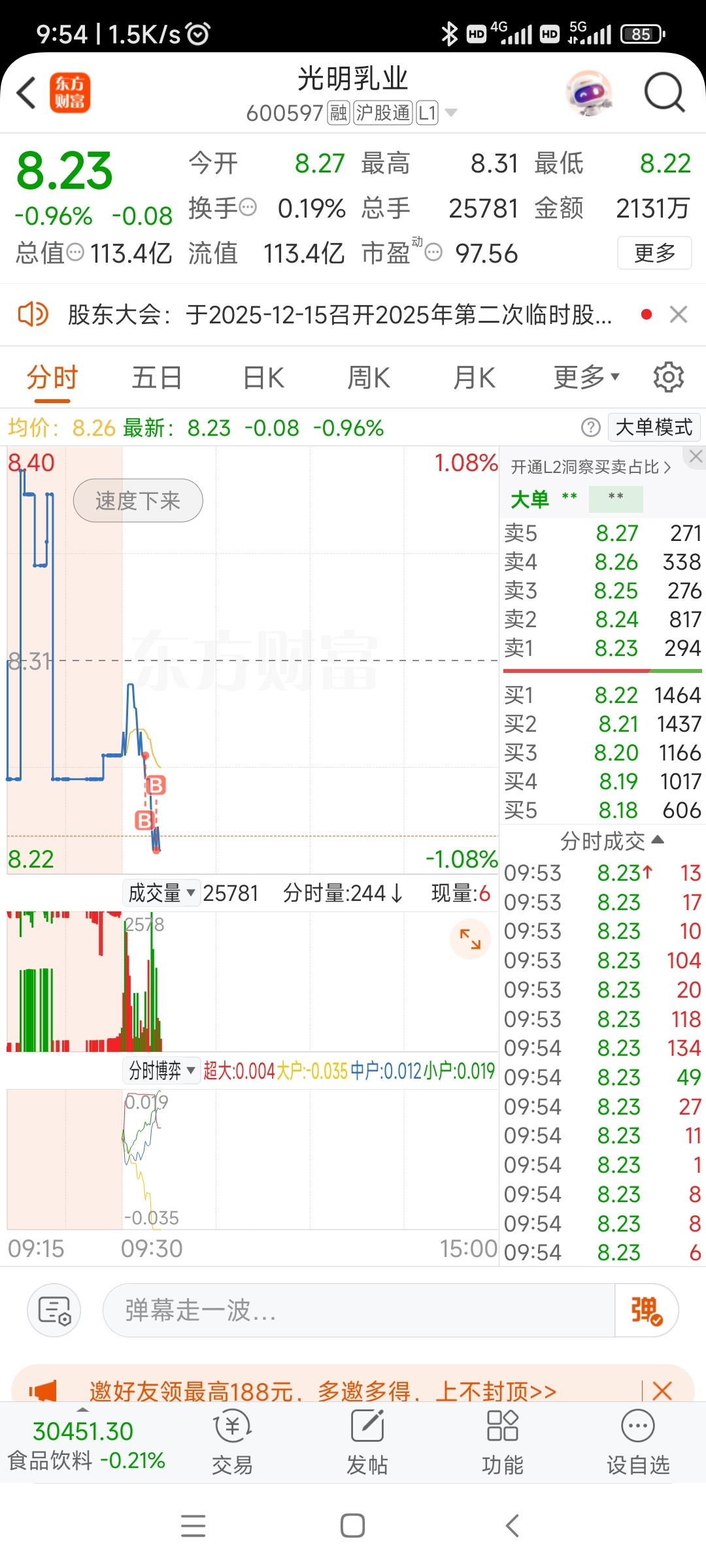 $光明乳业(SH600597)$ 赶紧跌,我等着全仓干