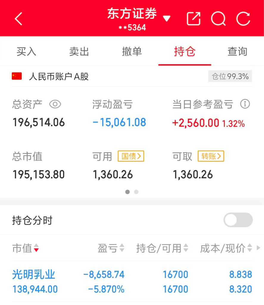 $光明乳业(SH600597)$ 还有5毛钱回本