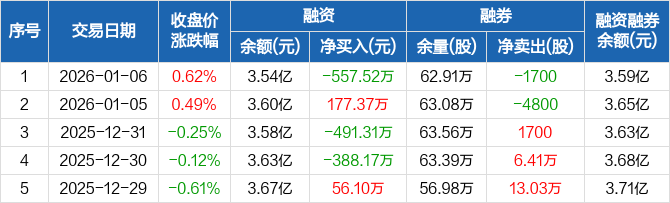 光明乳业:融资净偿还557.52万元,融资余额3.54亿元(01-06)