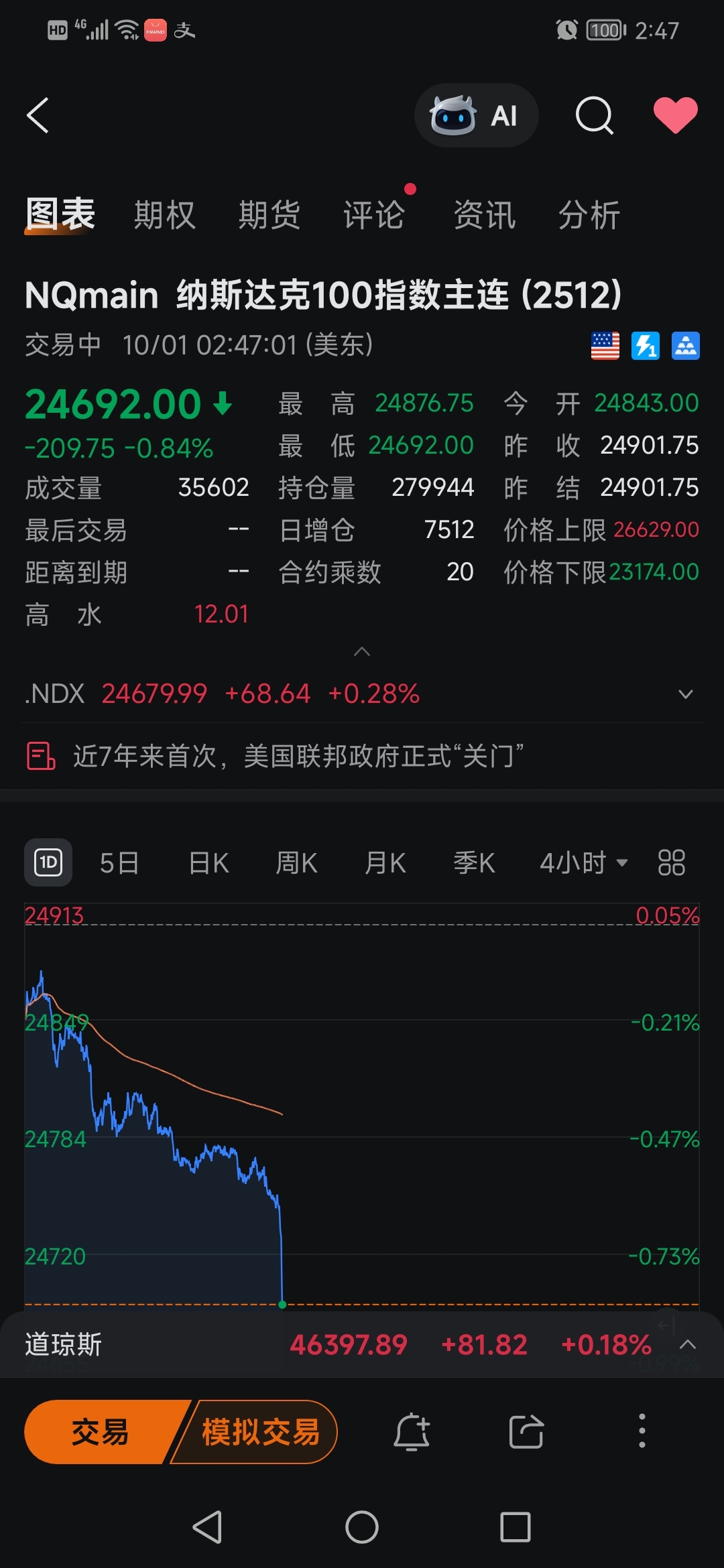 政府关门了,美股指期货盘前大跌,昨天减仓对了吧,每次咱放假外围股市都大跌,节后又