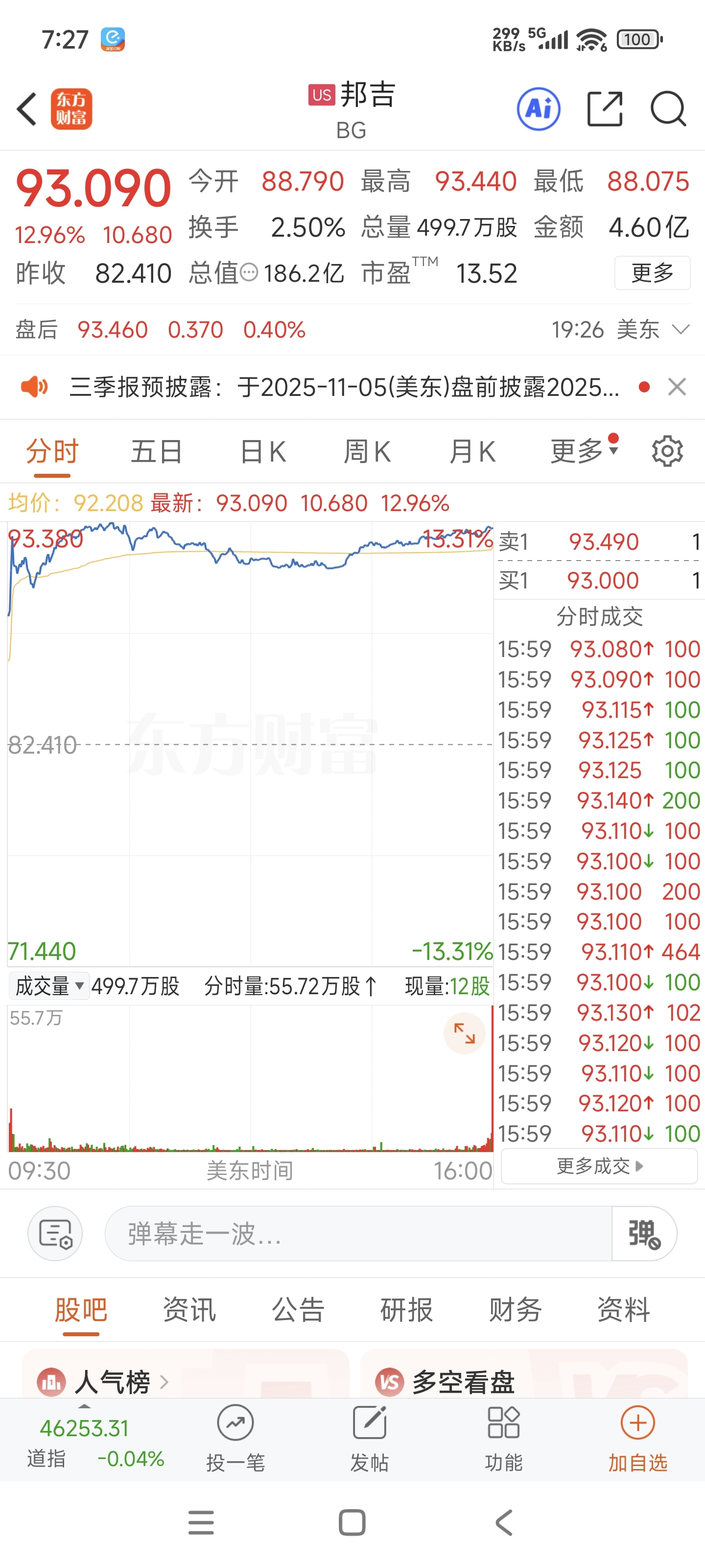 $北大荒(SH600598)$ $邦吉(NYSE|BG)$ 对标北大荒,自己看看涨了多少,美国农种业板块集体飙升。