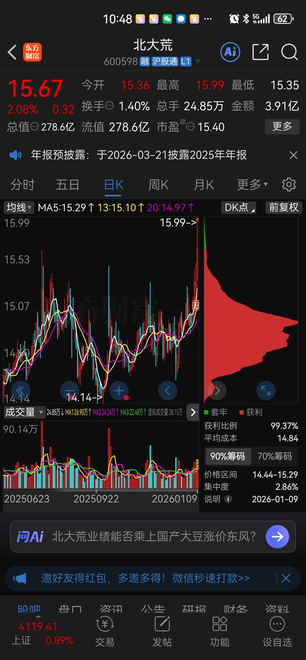 $北大荒(SH600598)$ 自选一年,今天大胆进。666