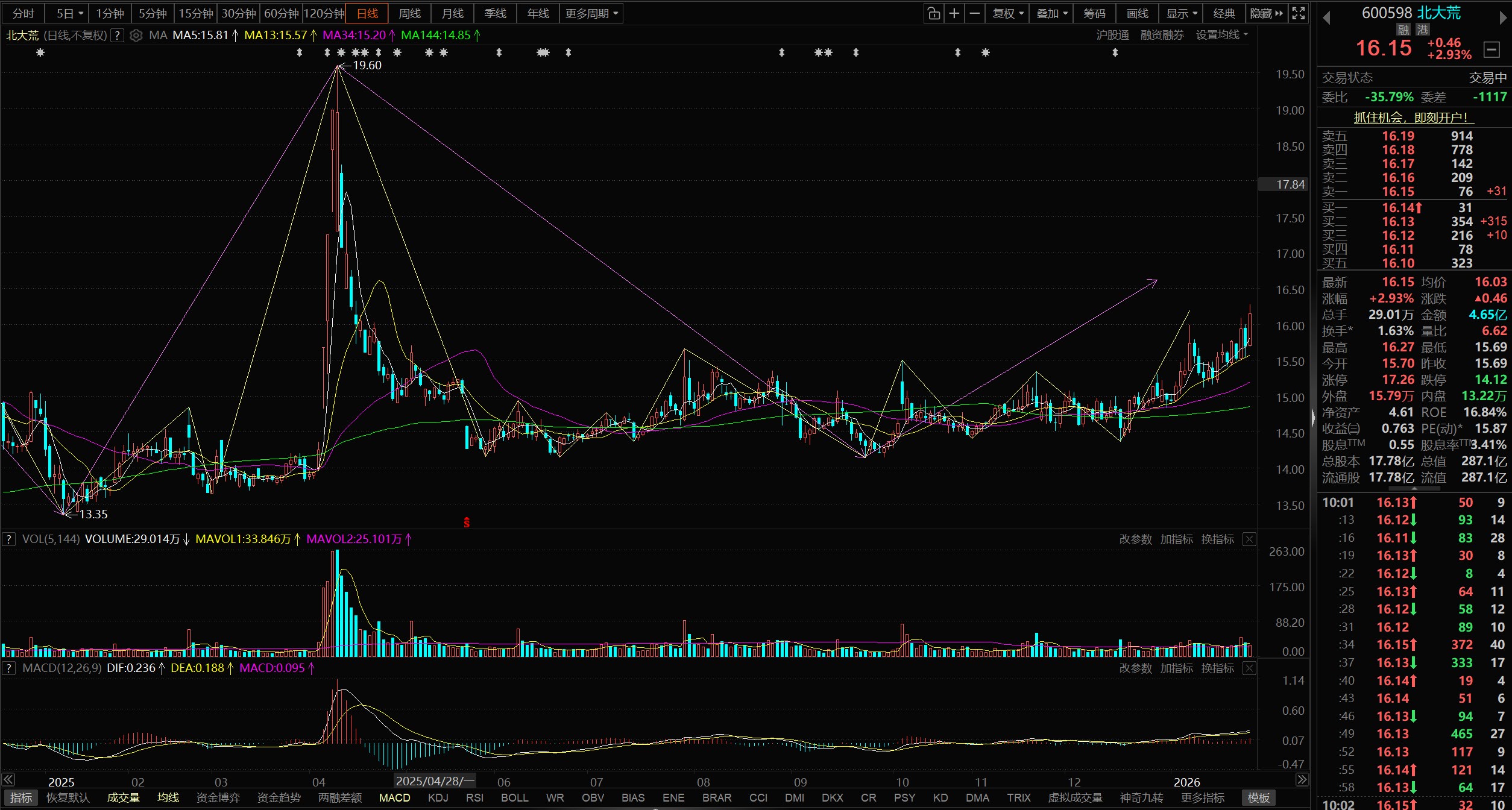 $北大荒(SH600598)$ 今天正式启动。第一目标价20元。