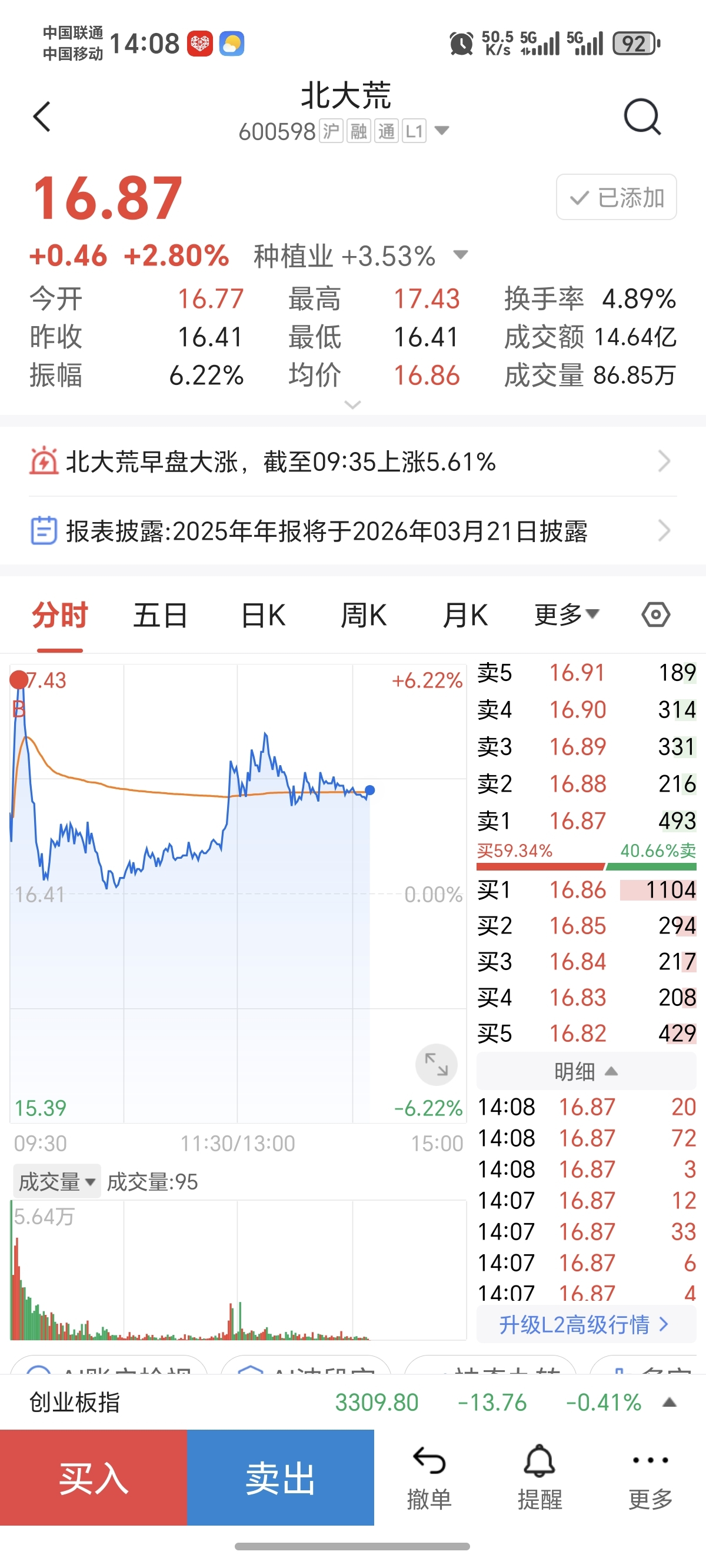 $北大荒(SH600598)$