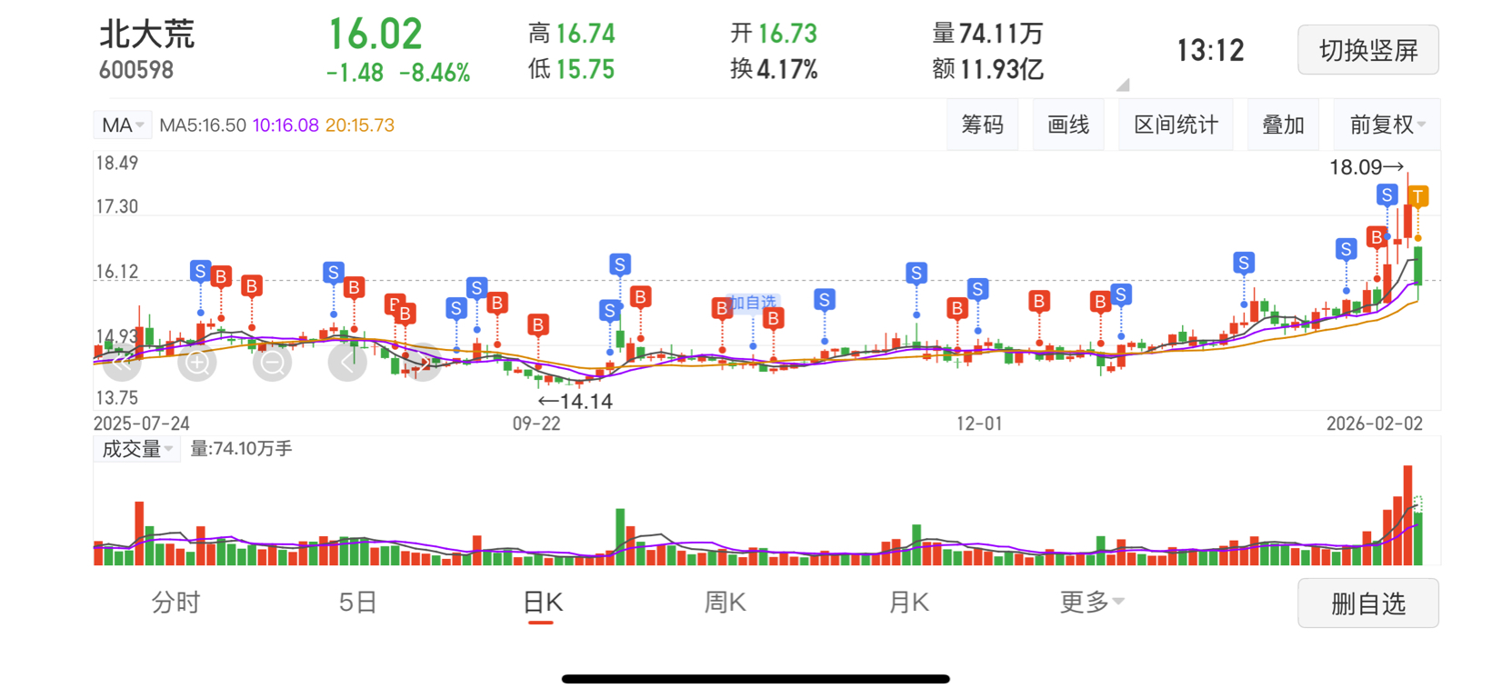 $北大荒(SH600598)$ 跌停我入了,小t了一把