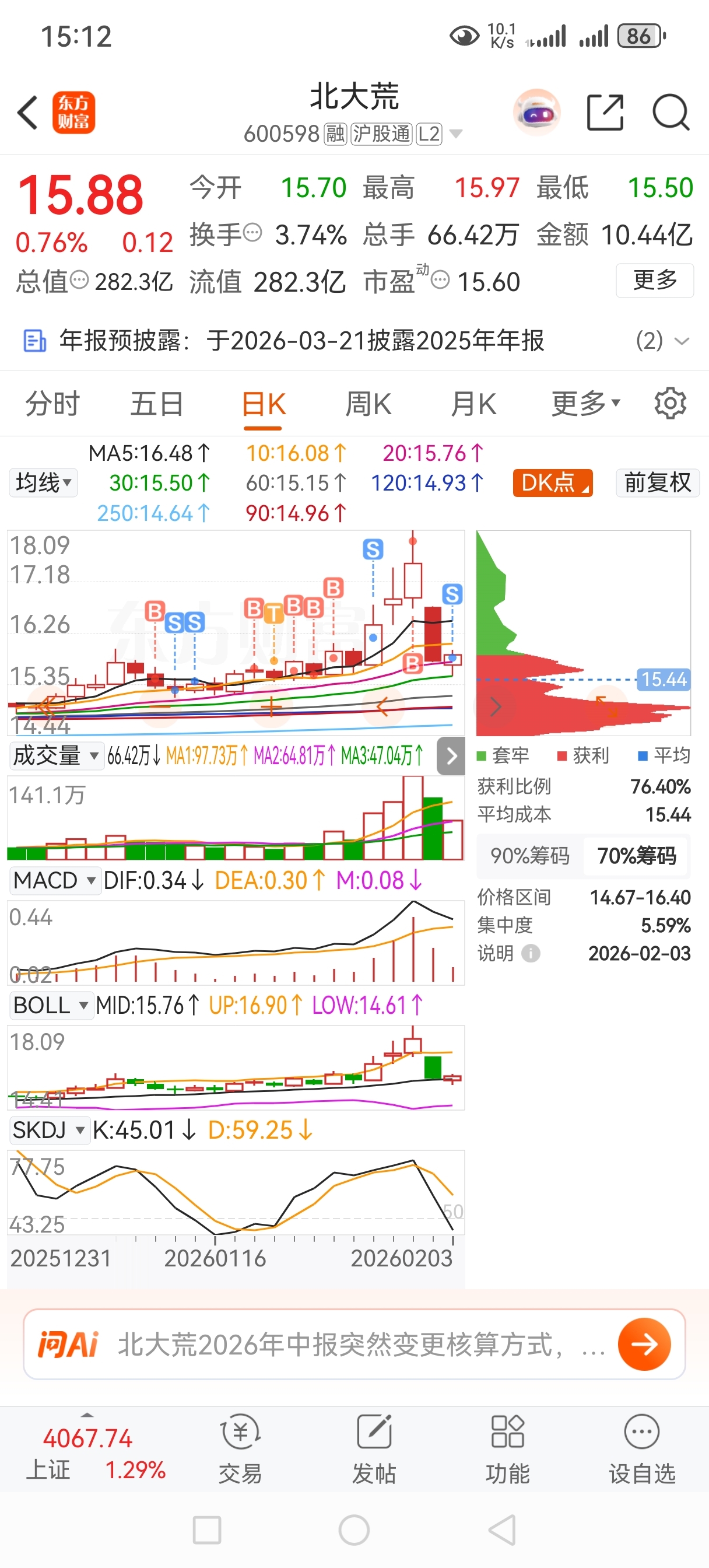 $北大荒(SH600598)$ 今天终于把它卖掉了,亏12个点,留下的发财。