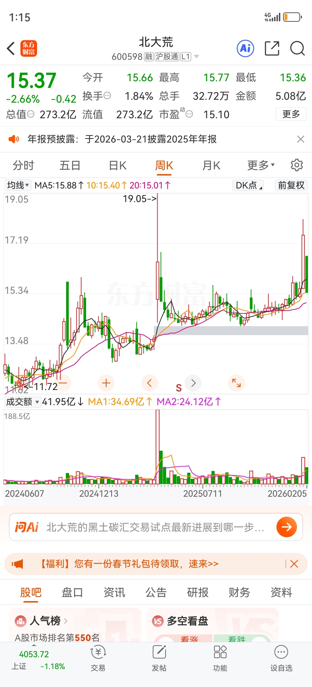 $北大荒(SH600598)$ 看周线,涨了12个点又跌了12个点,最终还是跌了