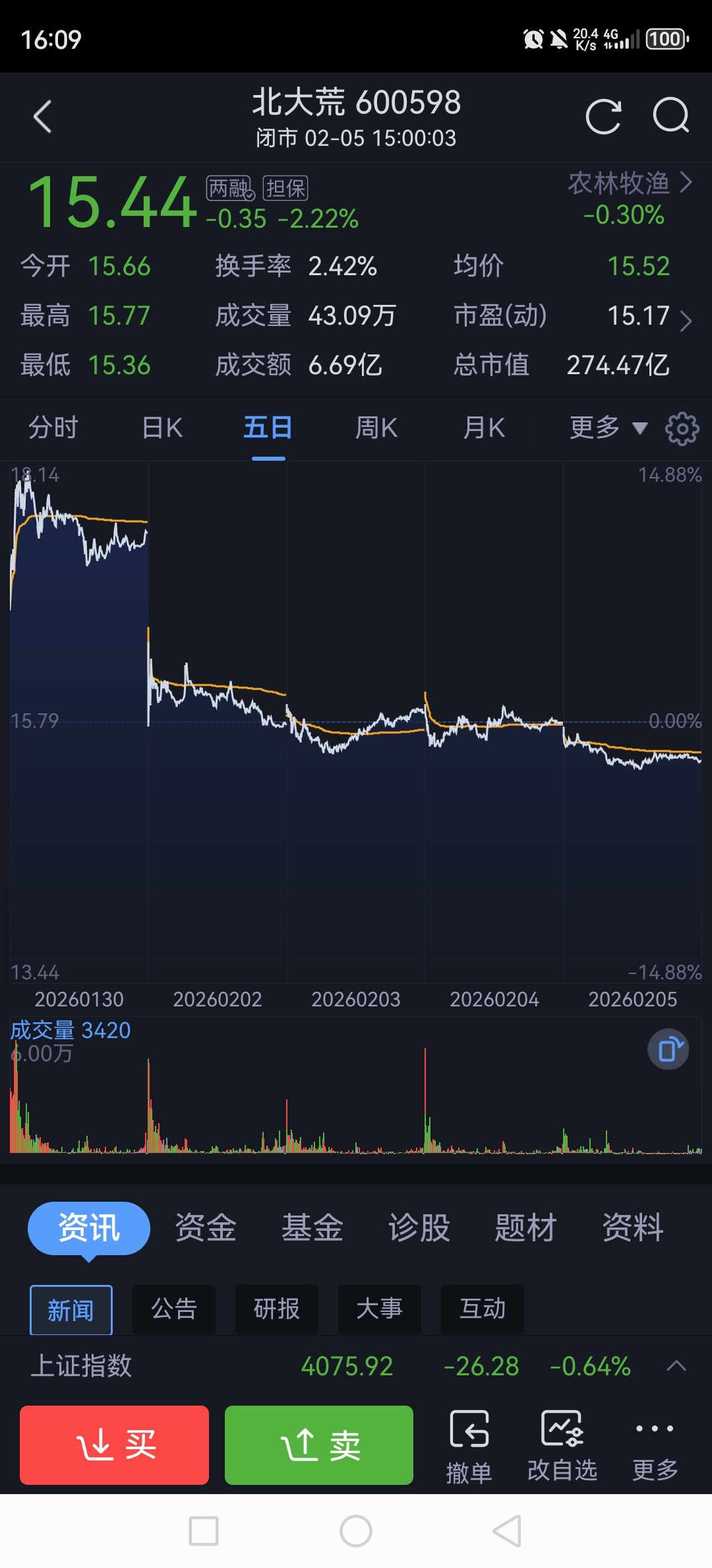 15.7元北大荒明天能到吗?我怎么看着北大荒明天带概率跌呢