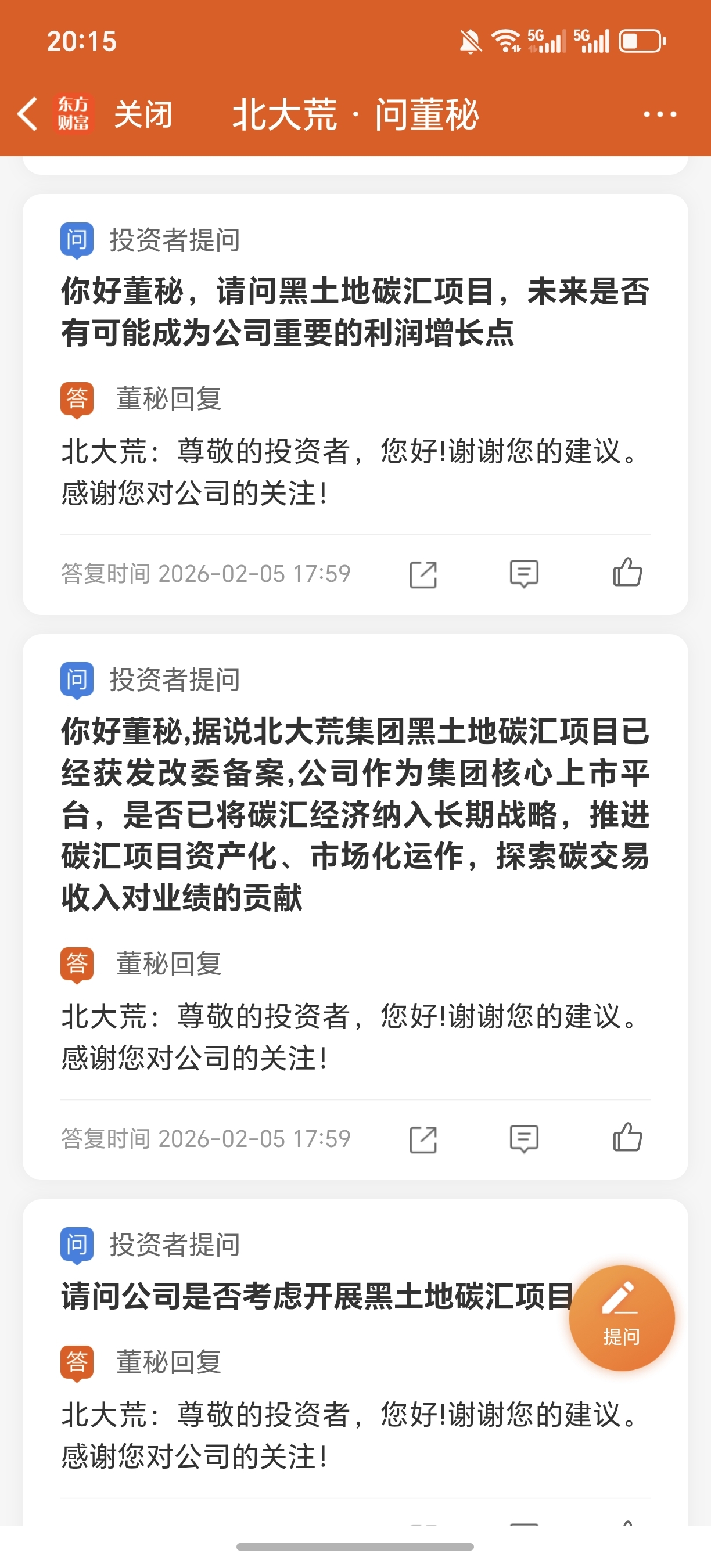 $北大荒(SH600598)$ 投资者问北大荒董秘土地碳汇的问题,董秘这种回答投资者的方式可不可以向上交所投诉