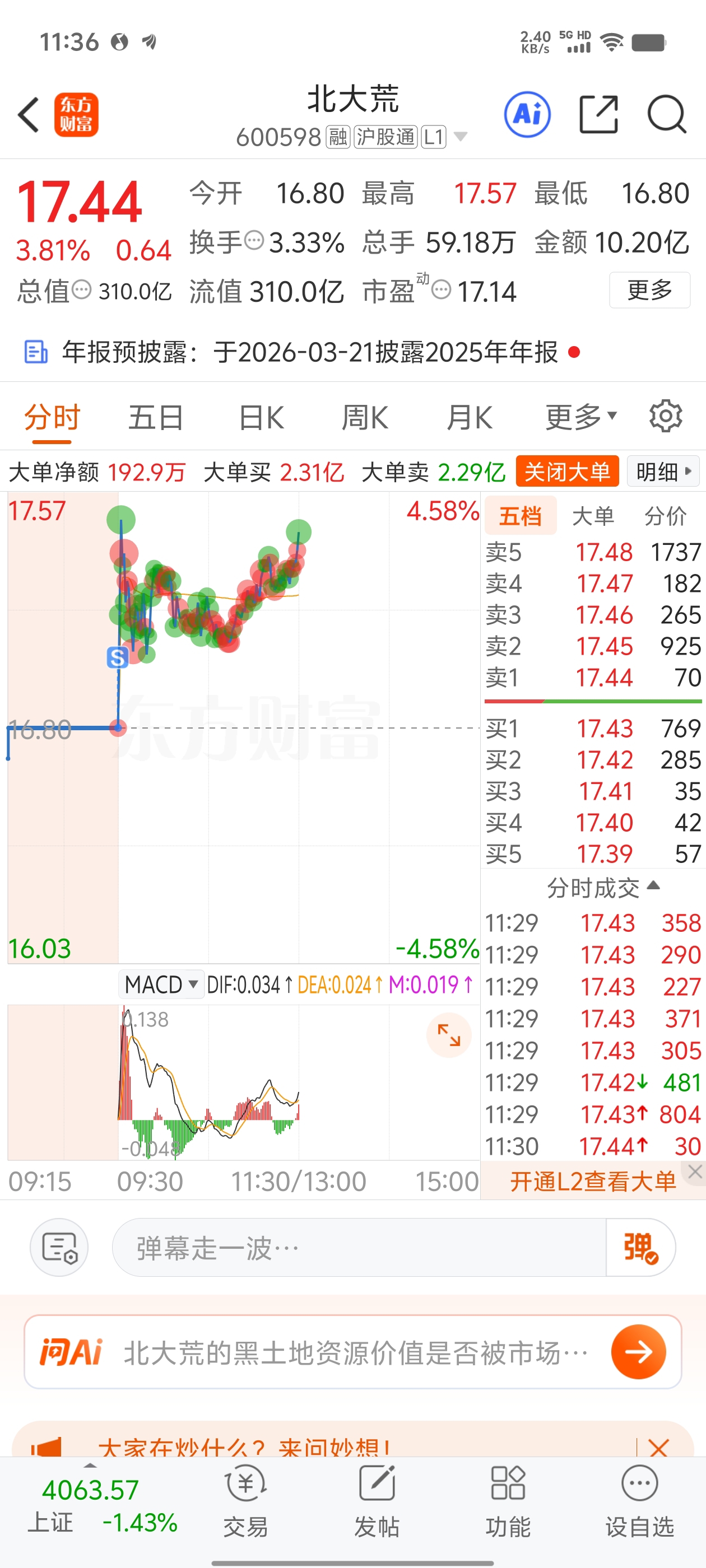 $北大荒(SH600598)$ 昨天看好你 今天决定抛弃你,杀进军工板块!该留你一会儿