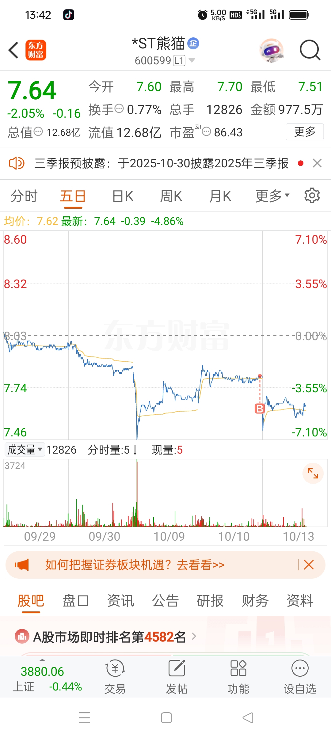 $*ST熊猫(SH600599)$ 都怪我,抄底买崩了