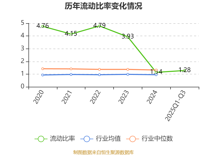 2025年前三季度,公司流动比率为1.28,速动比率为1.05。