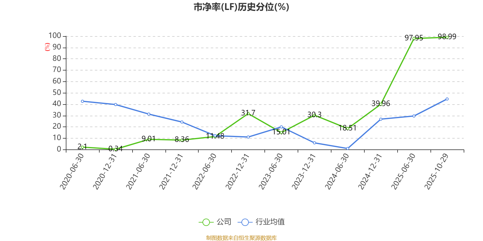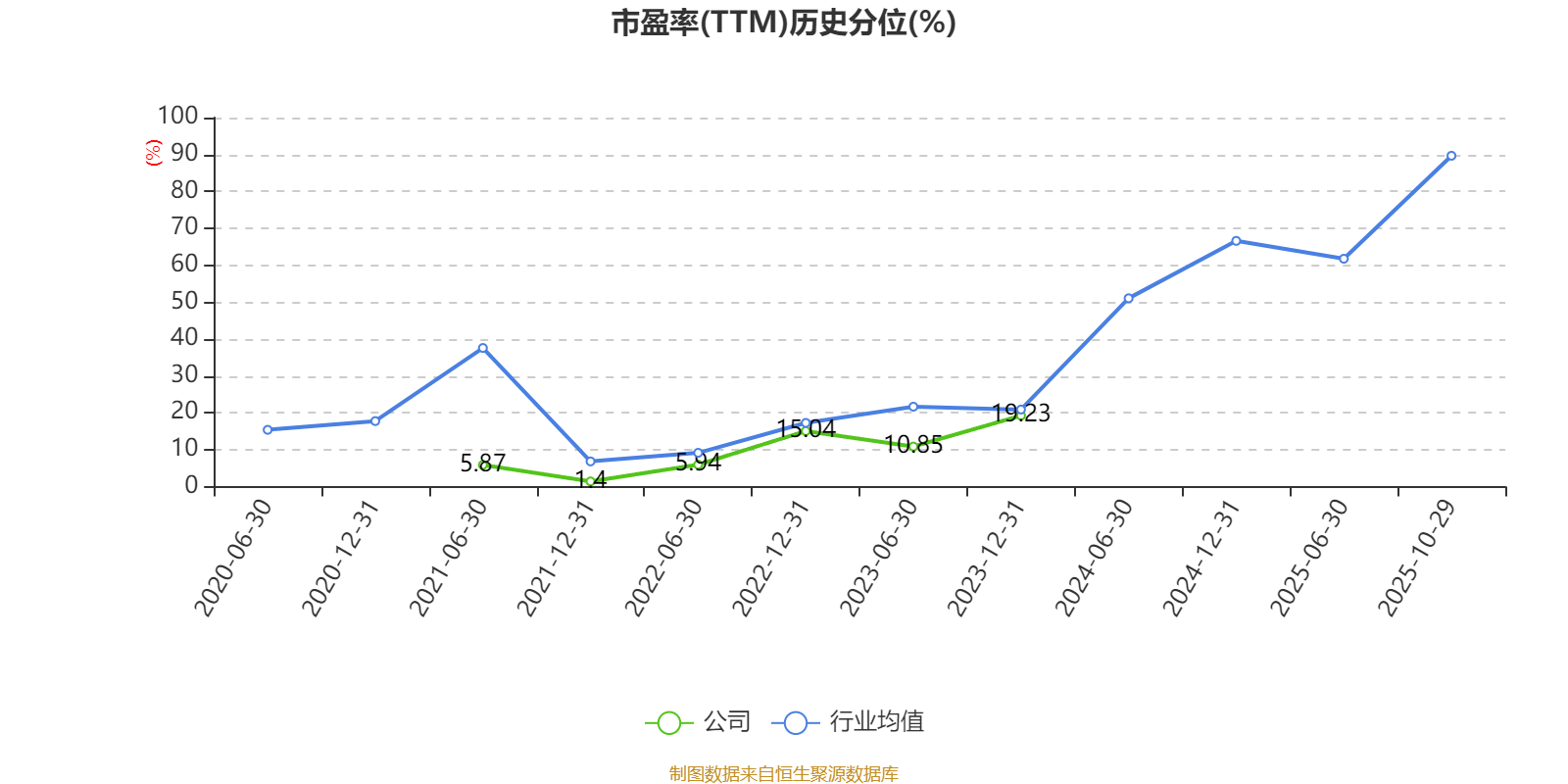 市盈率、市净率为负时,不显示当期分位数,会导致折线图中断。