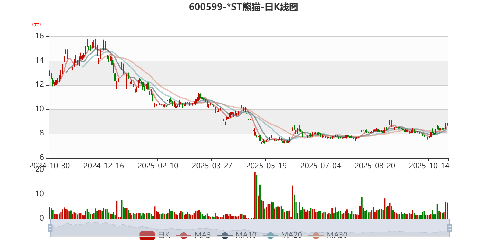 以10月29日收盘价计算,*ST熊猫目前市盈率(TTM)约为-3倍,市净率(LF)约12.67倍,市销率(TTM)约5.45倍。