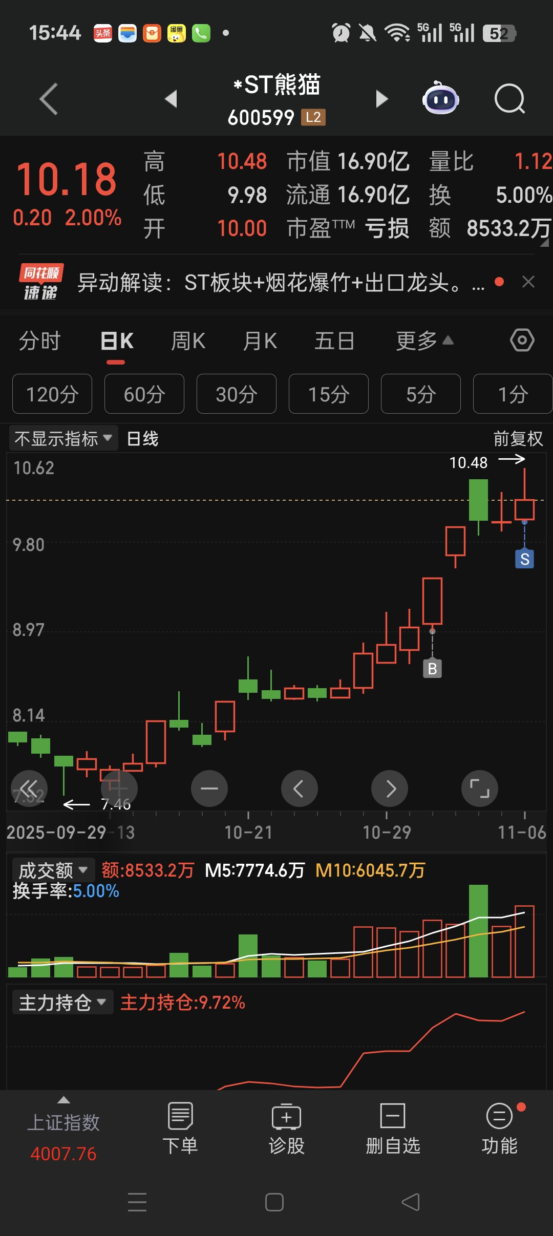$*ST熊猫(SH600599)$ 卖了卖了赚10个点,不是不看好。我想要数板战法,这股太磨叽