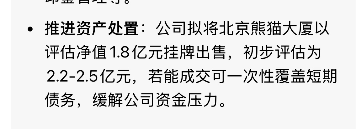 $*ST熊猫(SH600599)$ 这个固定资产出售成功的话应该能摘帽吧