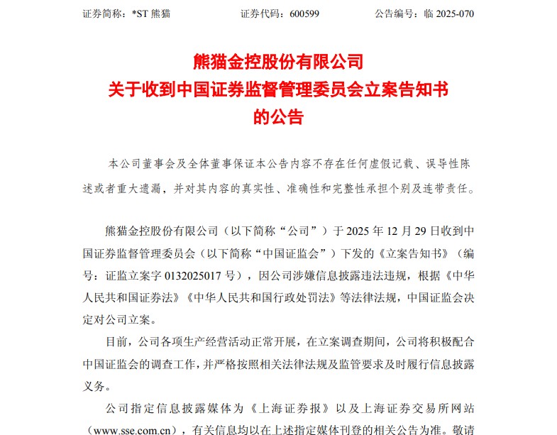 【友情提醒】《立案告知书》受损投资者如何判断自己是否符合索赔条件?维权时间节点至关重要!谁有资格主张权利?2025年12月29日之前买入600599熊猫金控,且在2025年12月30日(含当日)之后卖出或继续持有者。以上索赔登记条件仅代表证威律所观点。不作为任何证券投资决策和买卖建议,最终以法院的认定结果为准。 了解更多点头像看企业信息 或 查看 证威律所 相关信息