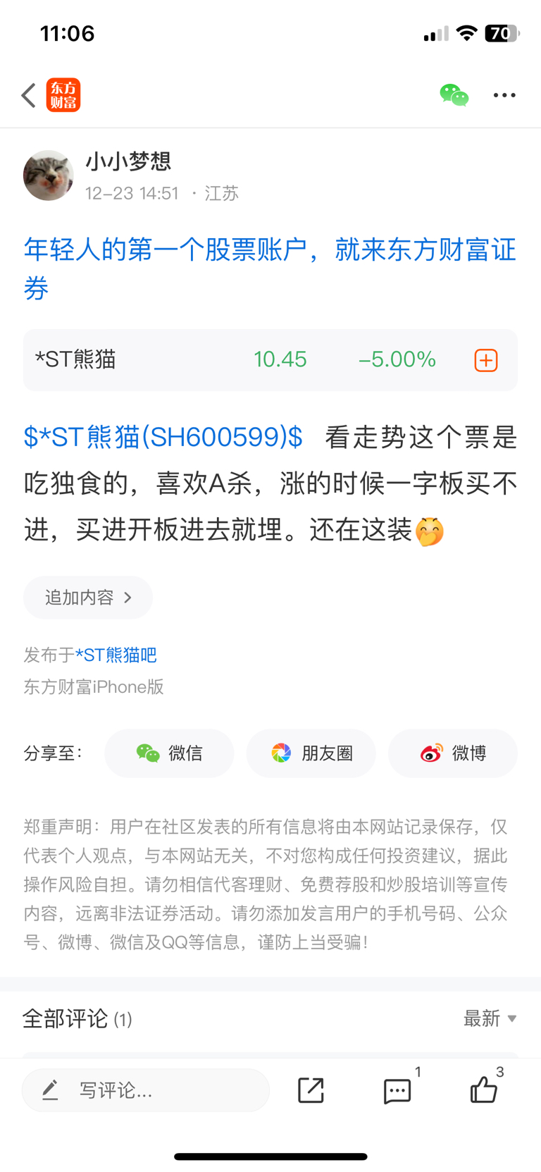 温馨提示: 1.根据《证券法》规定,禁止编造、传播虚假信息或者误导性信息,扰乱证券市场;2.用户在本社区发表的所有资料、言论等仅代表个人观点,与本网站立场无关,不对您构成任何投资建议。用户应基于自己的独立判断,自行决定证券投资并承担相应风险。《东方财富社区管理规定》