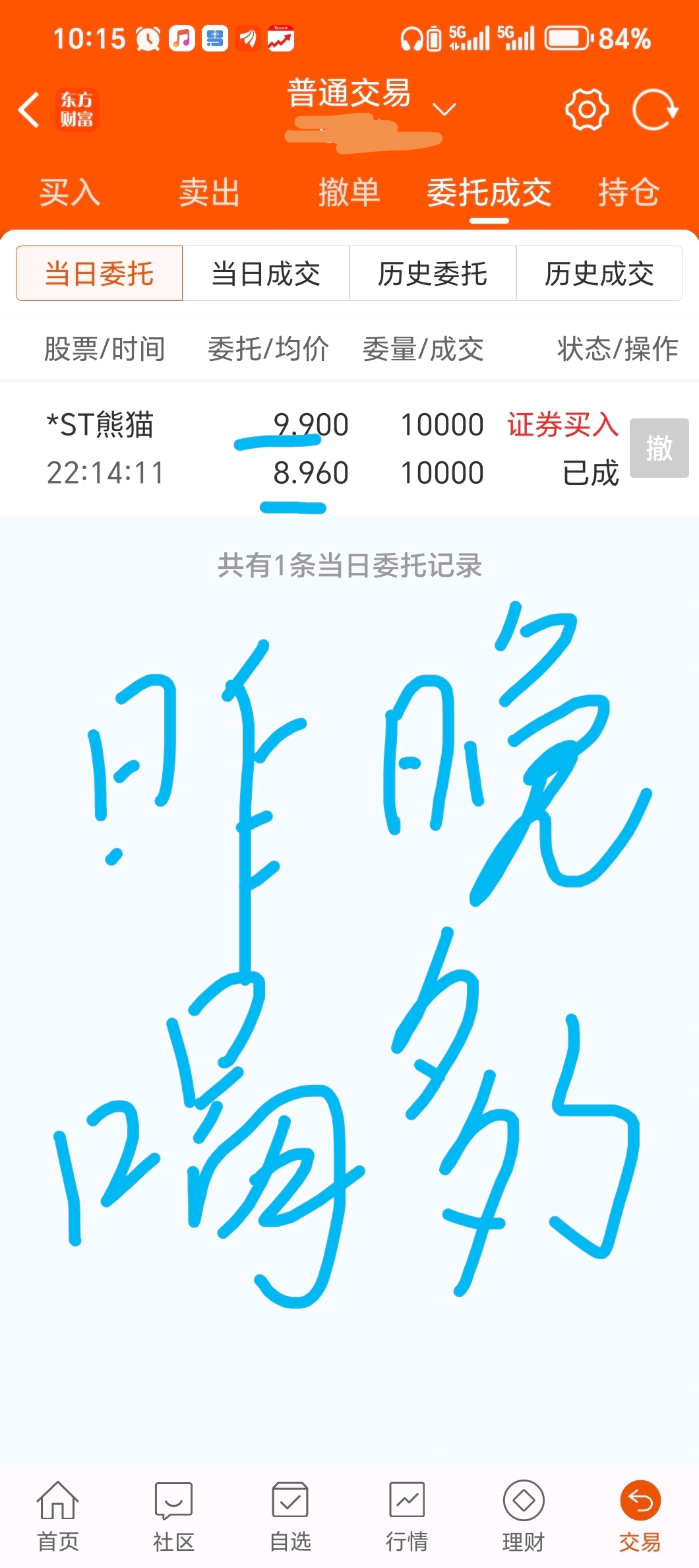 $*ST熊猫(SH600599)$ 昨晚喝多了,胡乱下了隔夜单