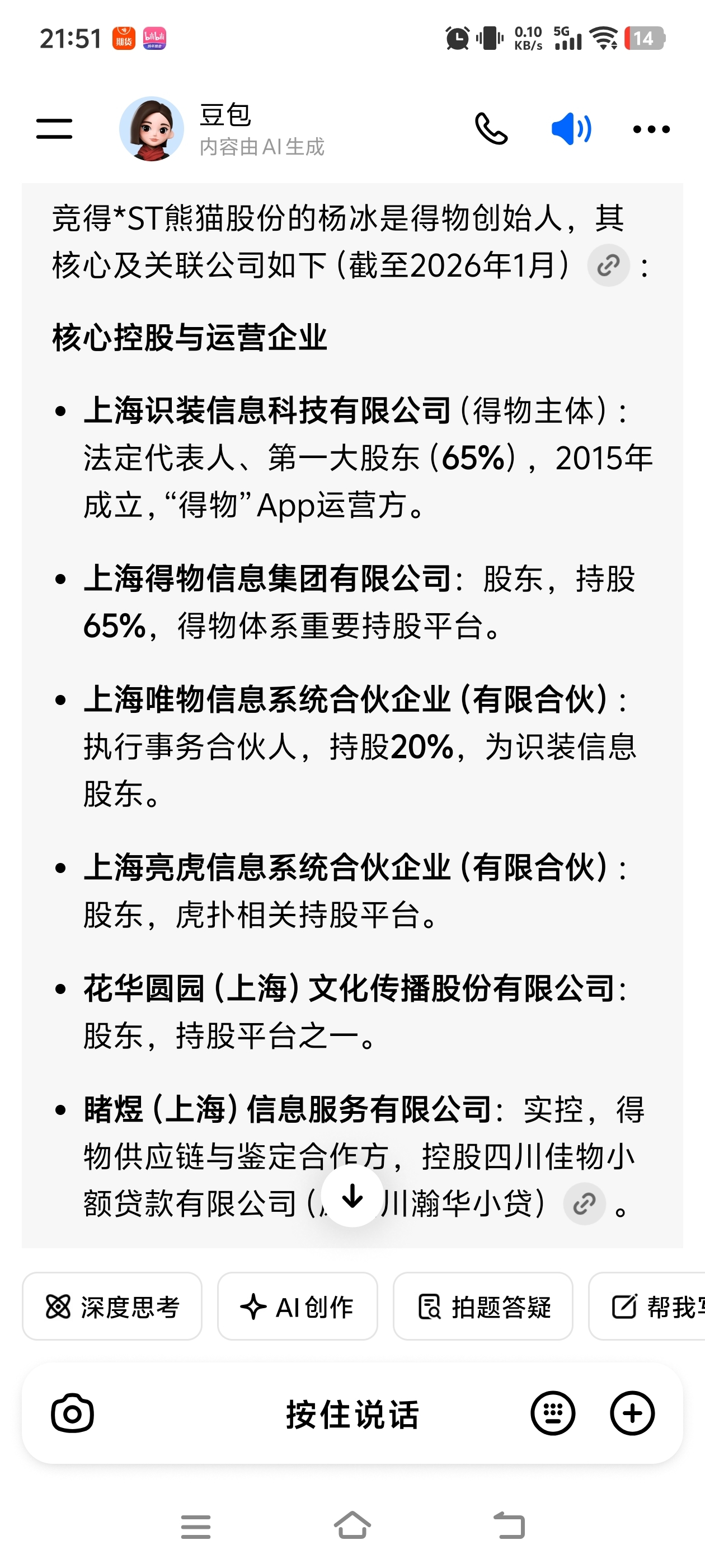 $*ST熊猫(SH600599)$ 得物会不会来借壳