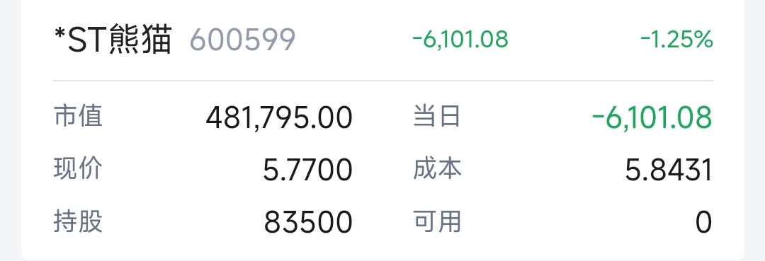 $*ST熊猫(SH600599)$ .继续加仓,拼了