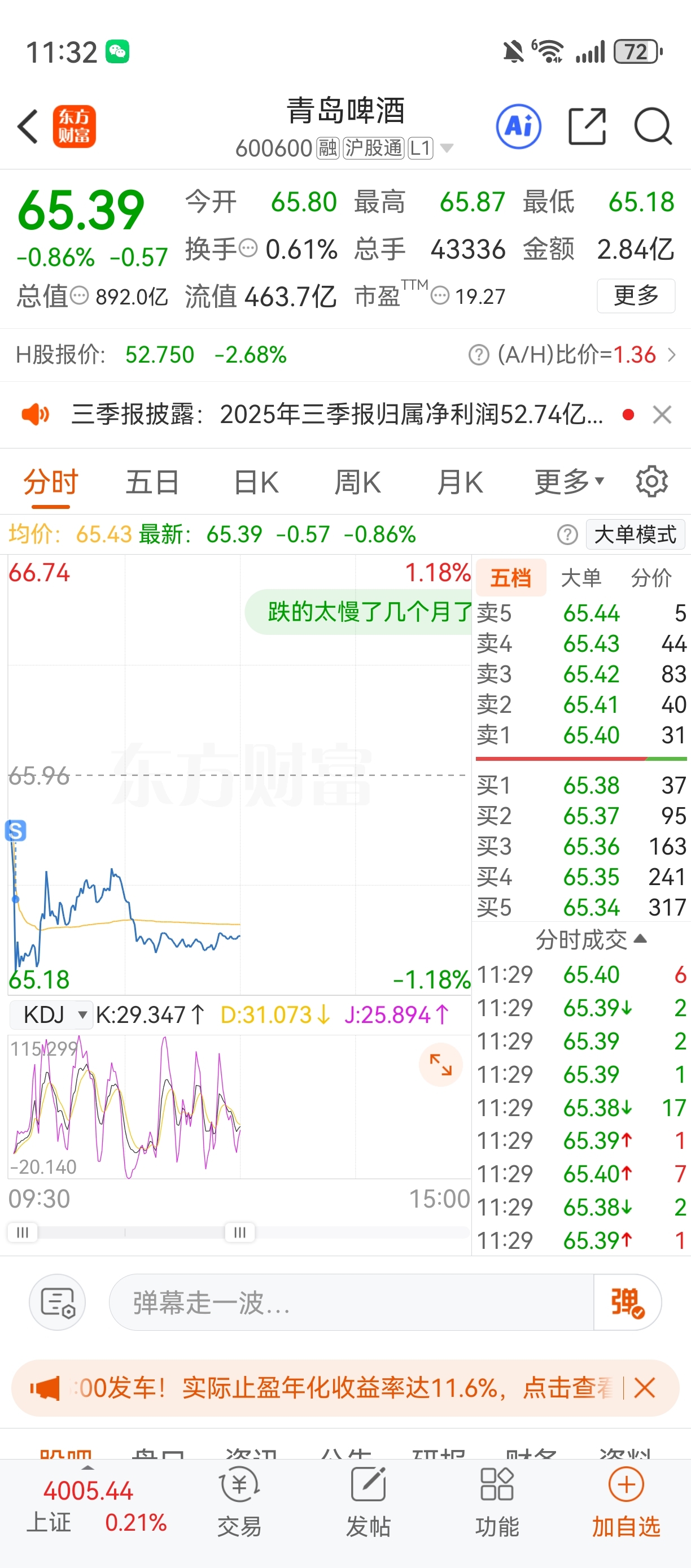 $青岛啤酒(SH600600)$ 亏了一条华子