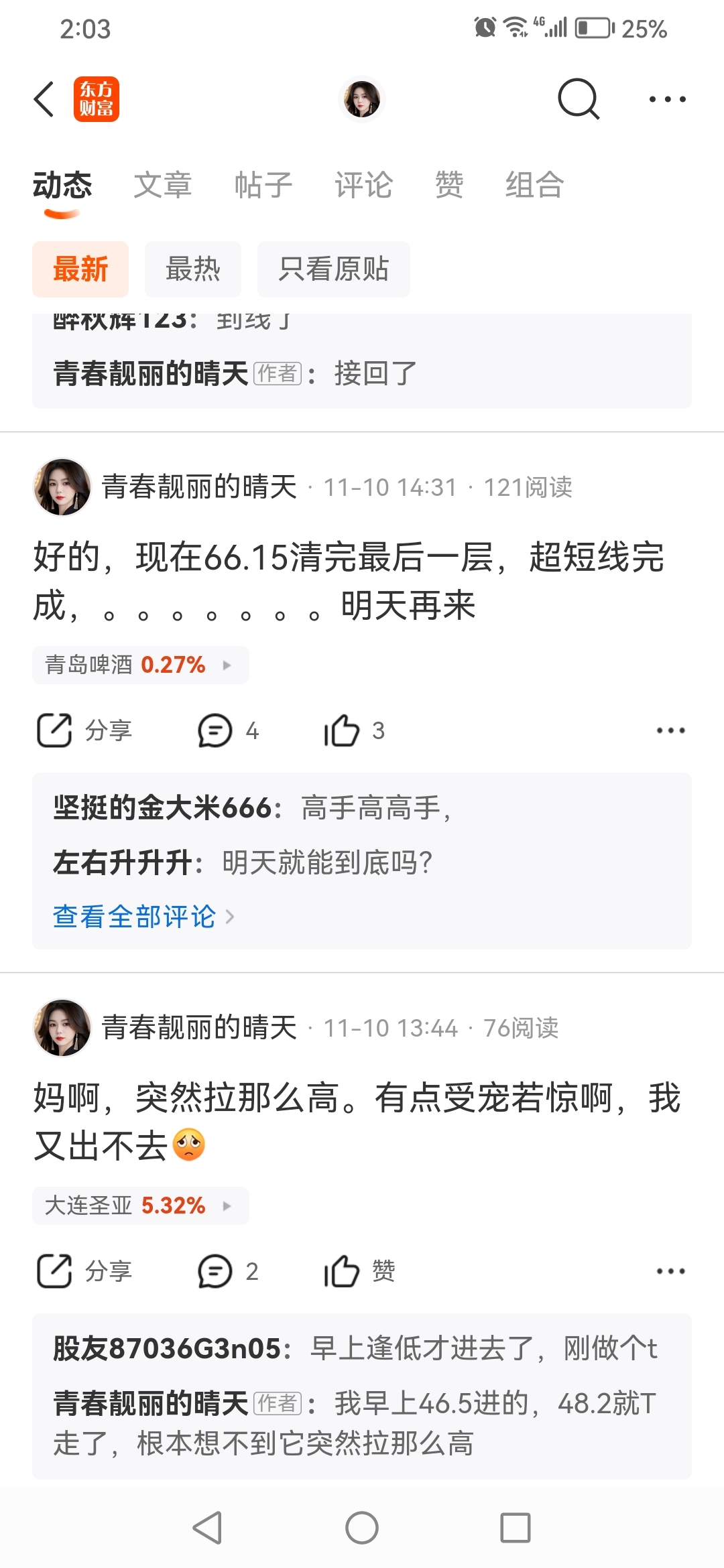 $青岛啤酒(SH600600)$ 这个1110号66.15清仓,11月11号65.83接了2层仓回来,也一直拿着,看看明天怎么样先,