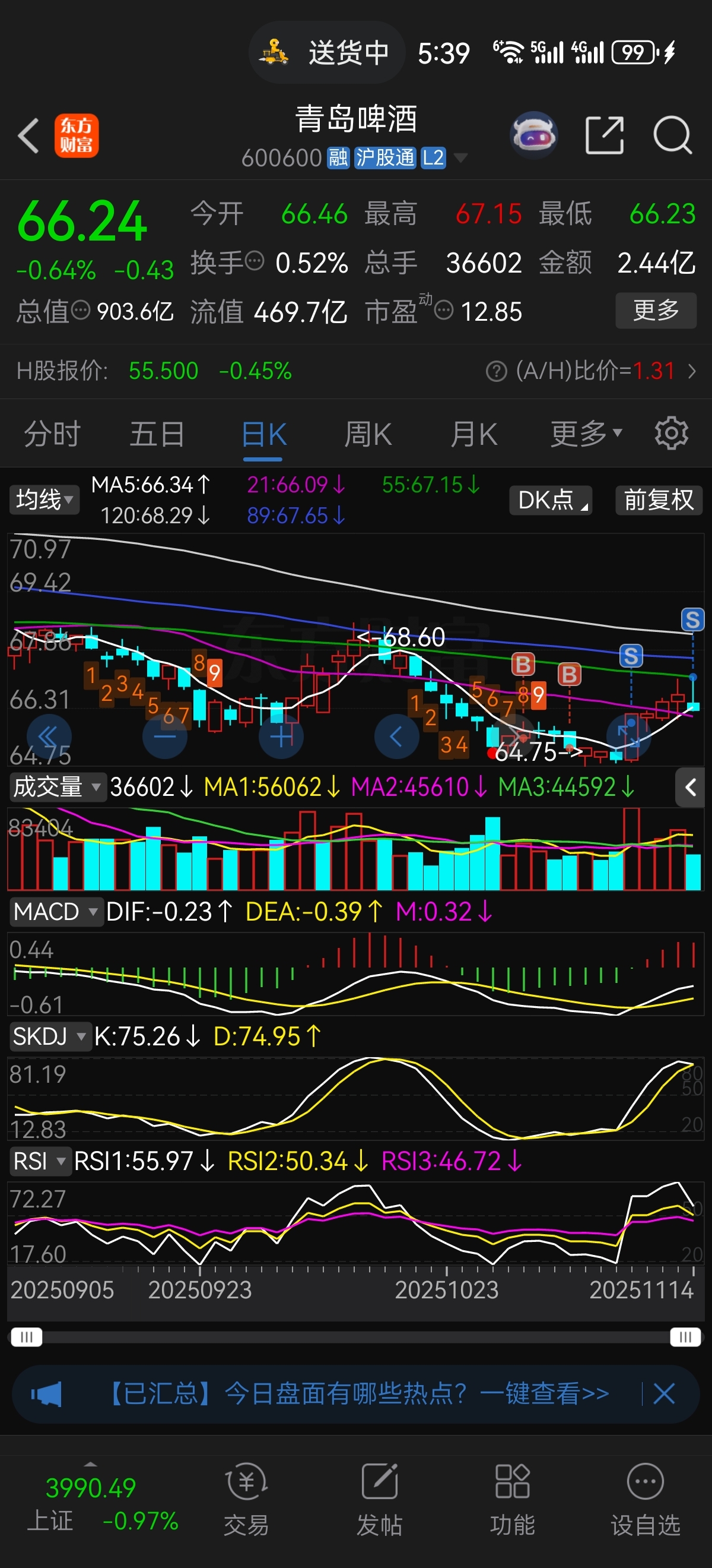 $青岛啤酒(SH600600)$ 谢谢主力给机会