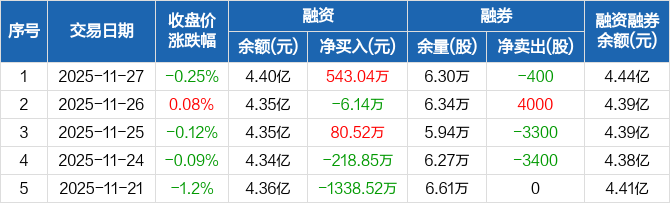 青岛啤酒:融资净买入543.04万元,融资余额4.4亿元(11-27)