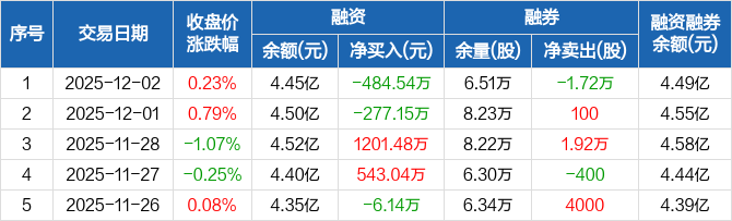 青岛啤酒:融资净偿还484.54万元,融资余额4.45亿元(12-02)