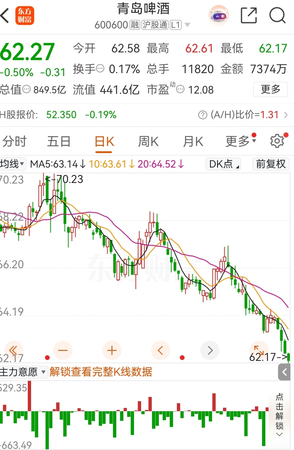 $青岛啤酒(SH600600)$ 飞流直下三千尺,可怕
