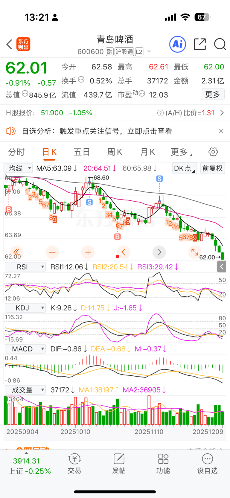 $青岛啤酒(SH600600)$ 吓人,还好跑得快