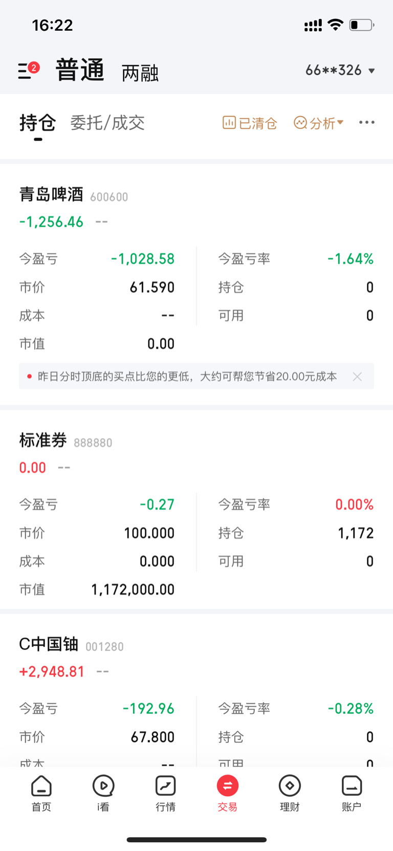 $青岛啤酒(SH600600)$ 昨天62.8进1000股,亏了1200
