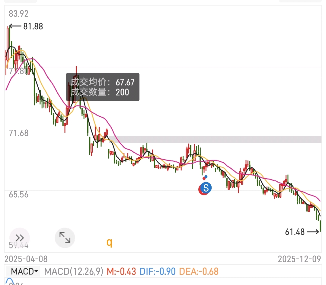 67.67清仓亏了1415.07元回头看看当时操作没有问题。真是苦了后来者青稞面