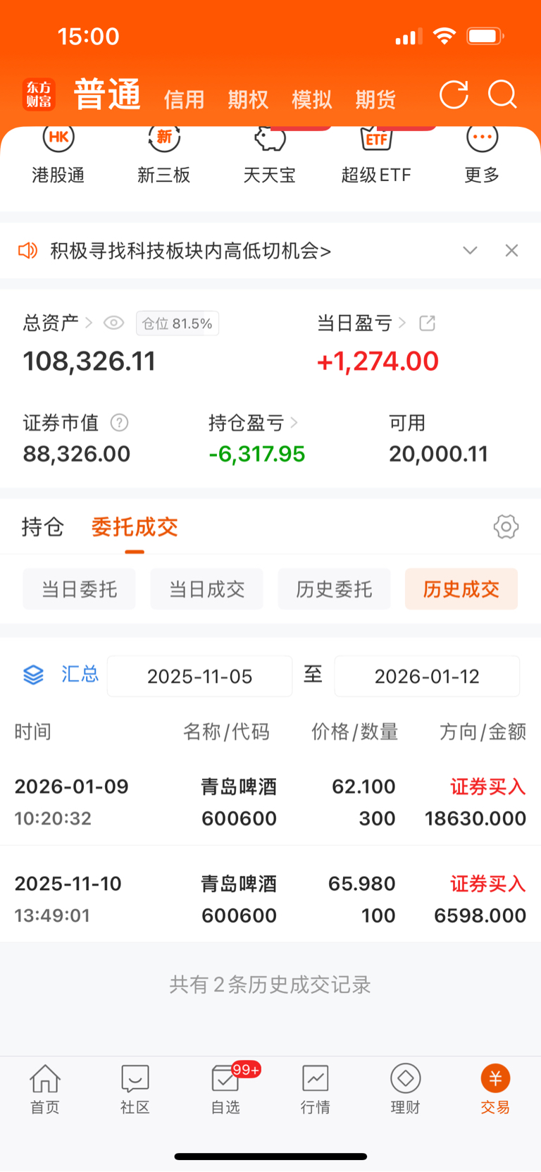 $青岛啤酒(SH600600)$ 上次补在66,这一次补在62.10,最高纪录亏损8.8K,今天没补进