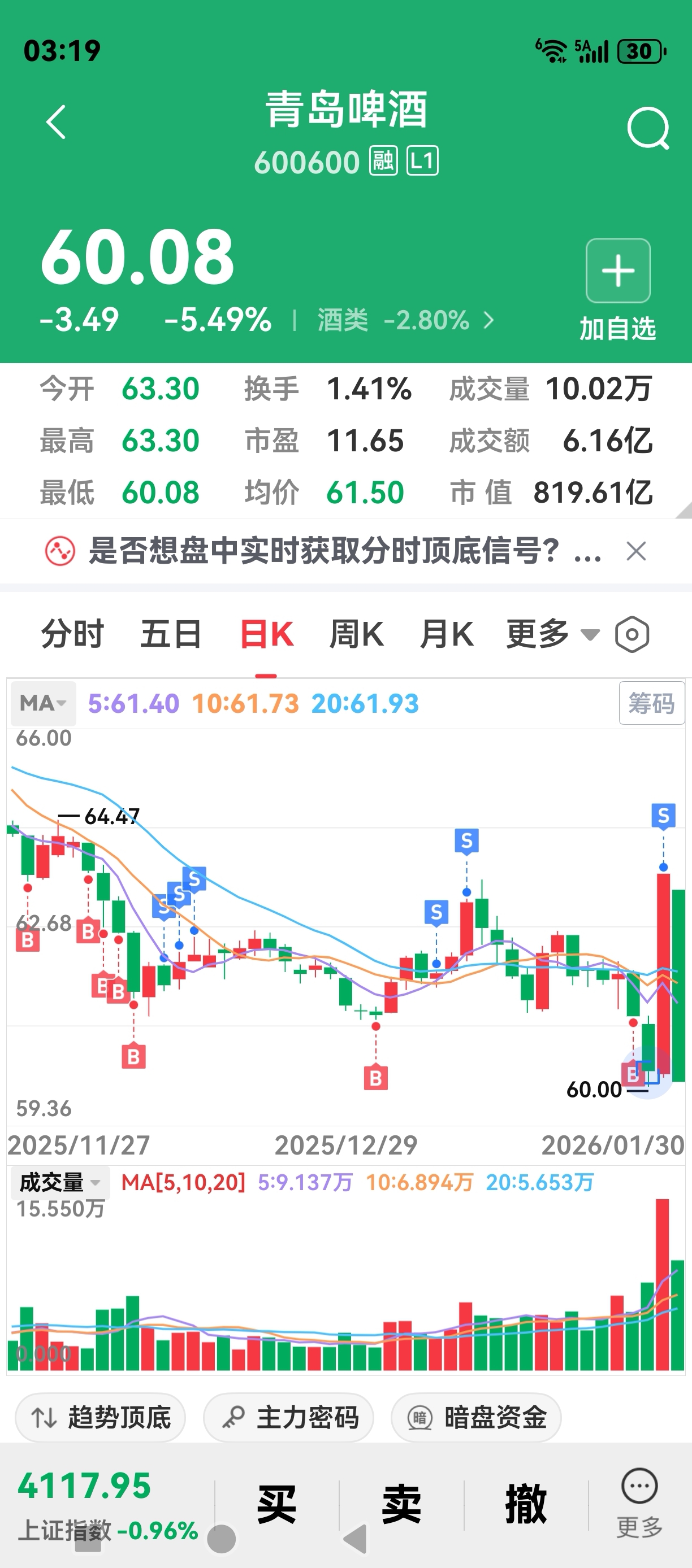 幸亏昨天高位一把清了,谢谢主力给的机会。