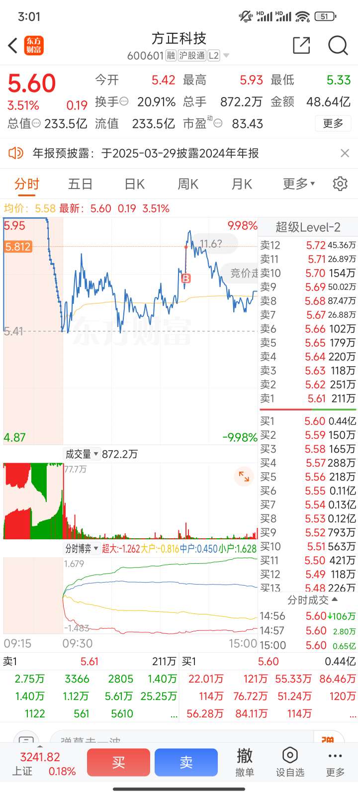 $方正科技(SH600601)$ 被5万手哥骗进来了,是一起赚还是一起亏呢
