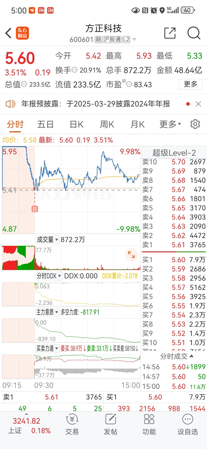 1月17日,买入方正科技,个人认为洗盘结束,大级别的应该会来,两个涨停,股价基本