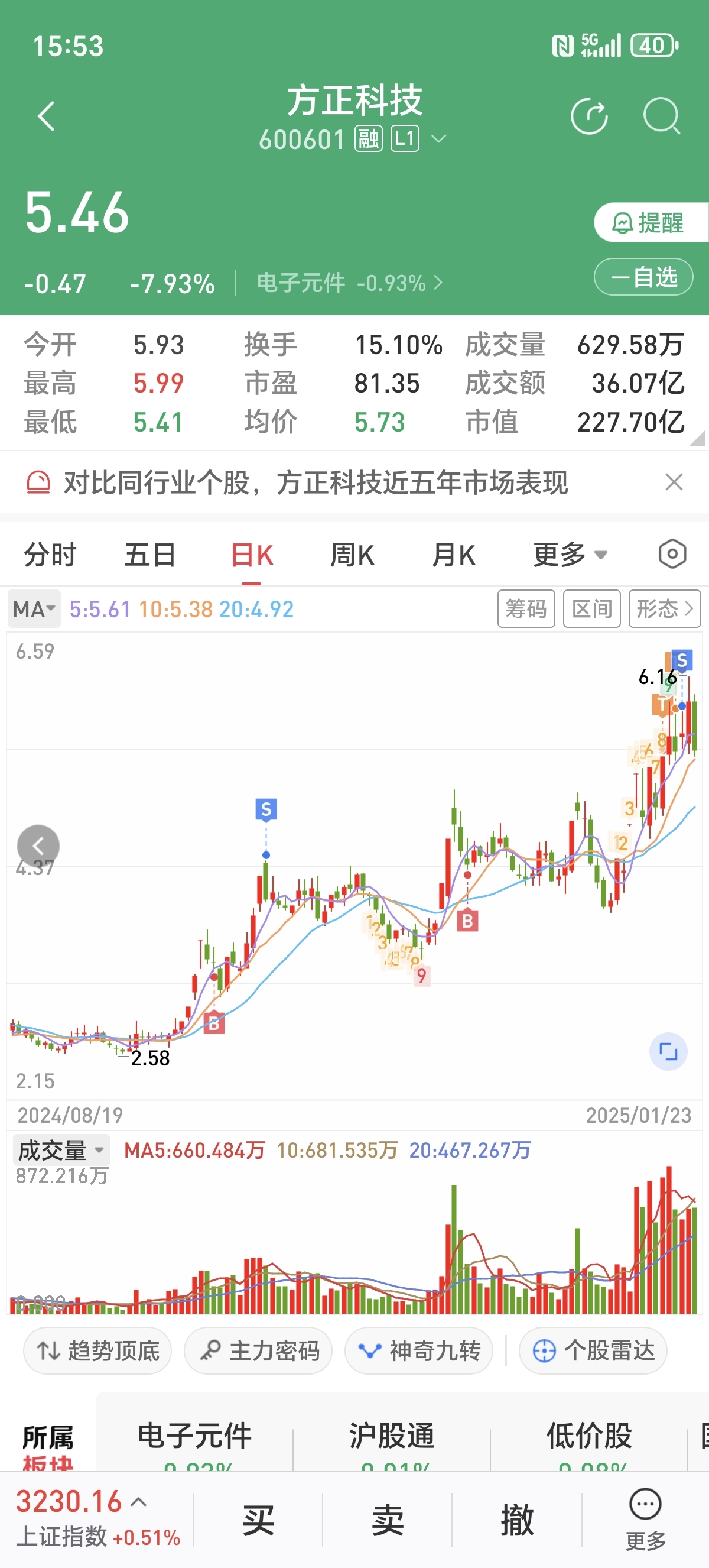$方正科技(SH600601)$ 清仓两次,T了两次。综合60%多