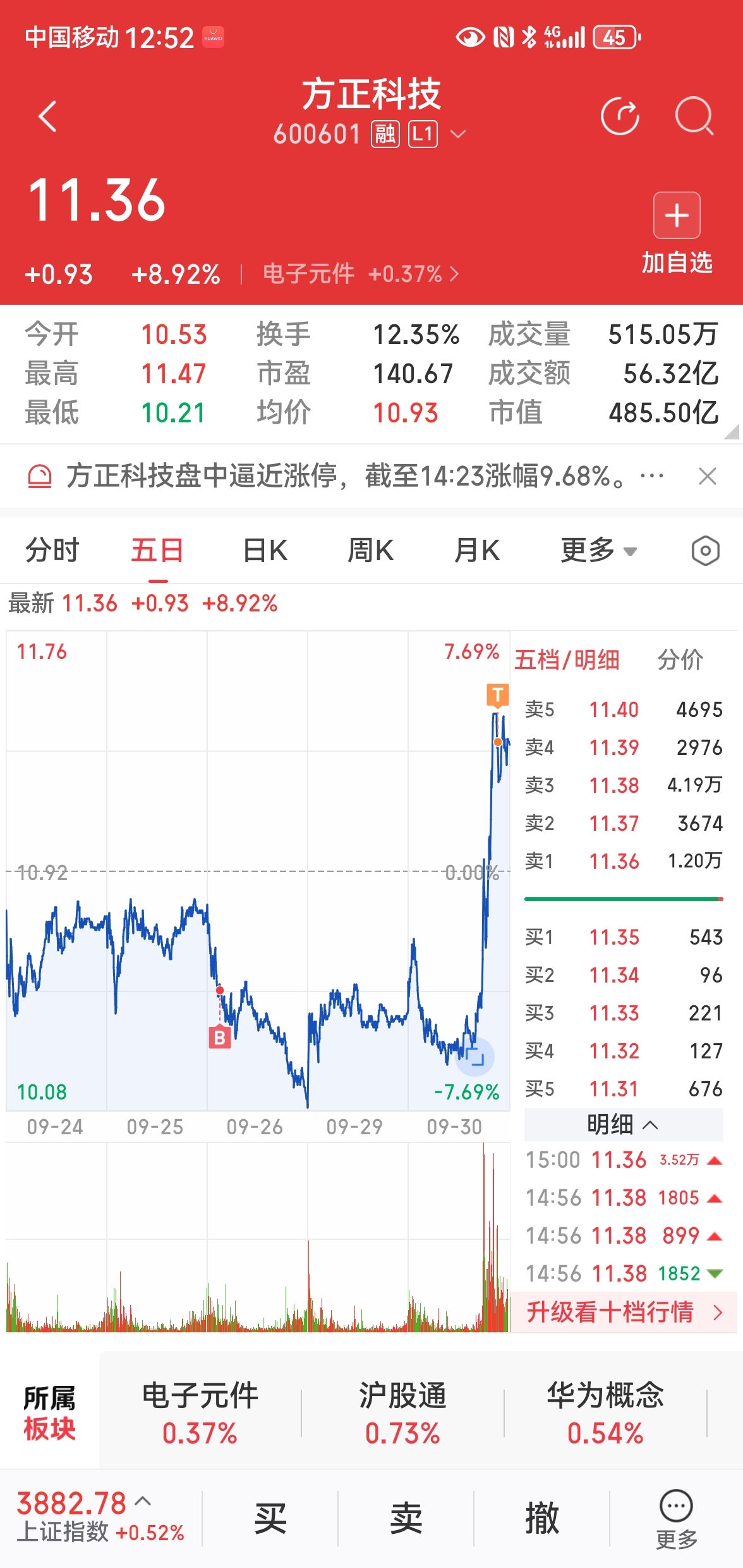 $方正科技(SH600601)$ 看这种趋势,20不是问题,第二波趋势起来了,坚定持有!