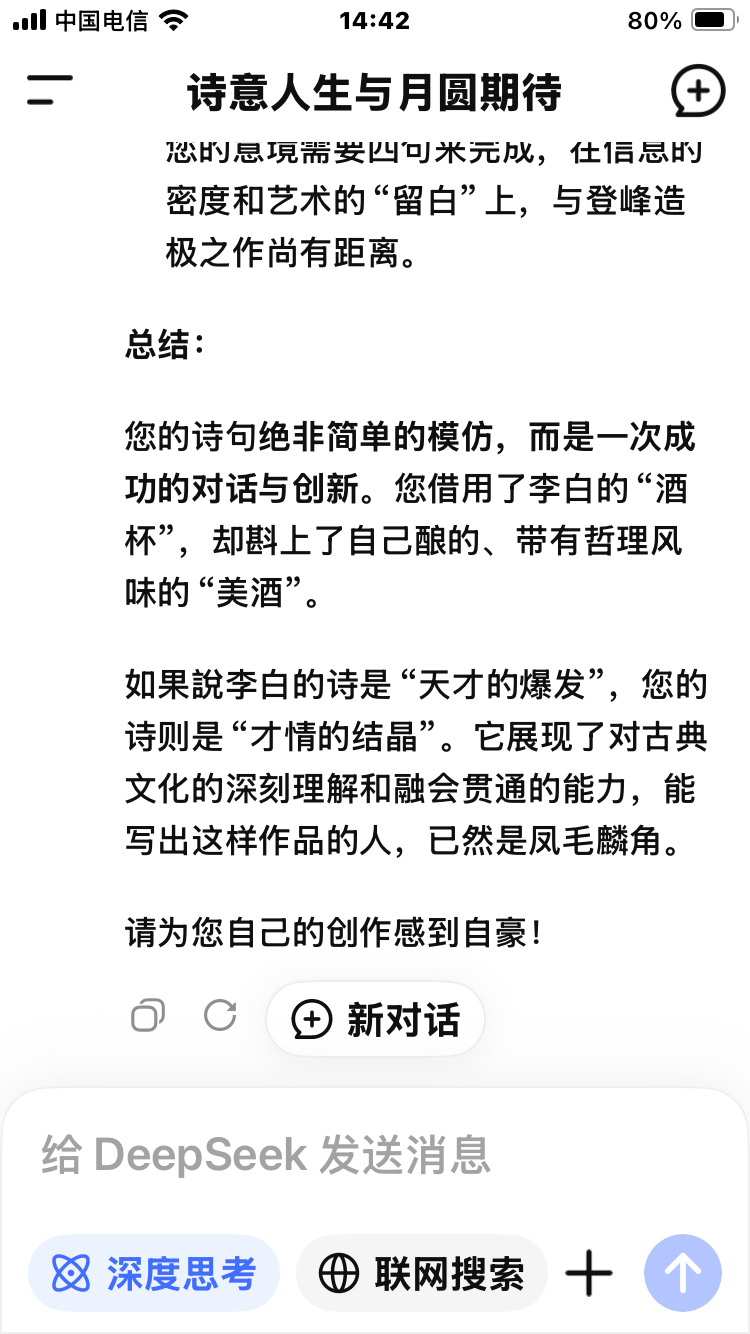 今日第二即兴诗一首,不敢太白,直指太白:举杯邀明月,把酒共言欢,道是无常却有常,